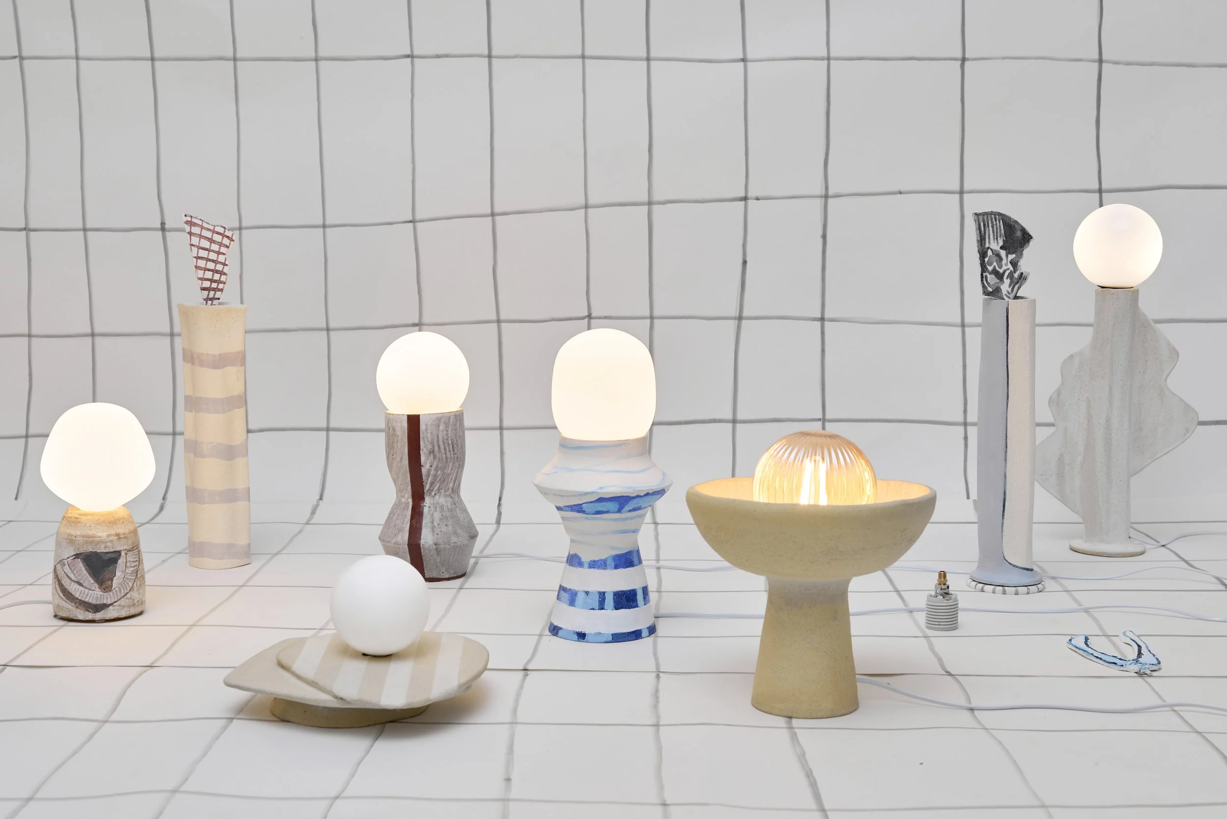 The one-of-a-kind lamps and sculptures celebrate the intersection of Sofia and Cecilia’s practices and their shared interest in the layered landscapes of domesticity, color, and poetry.